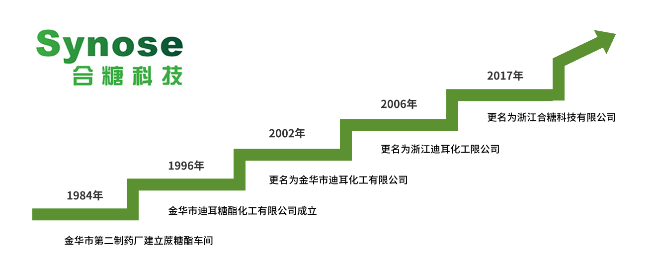 浙江合糖科技有限公司是国内专业从事蔗糖酯S系列产品研究开发的公司。1983年确立蔗糖酯项目,1984年中试,经过三十多年的技术改进与突破,公司现已发展成为目前国内领先的蔗糖酯生产厂家。